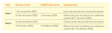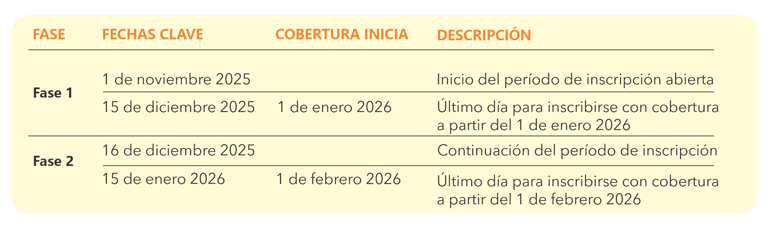 Inscribirte durante el Período de Open Enrollment (del 1 de noviembre 2025 al 15 de enero 2026) o tener un motivo especial (Special Enrollment, como cambio de trabajo, mudanza, matrimonio o nacimiento de un hijo).
